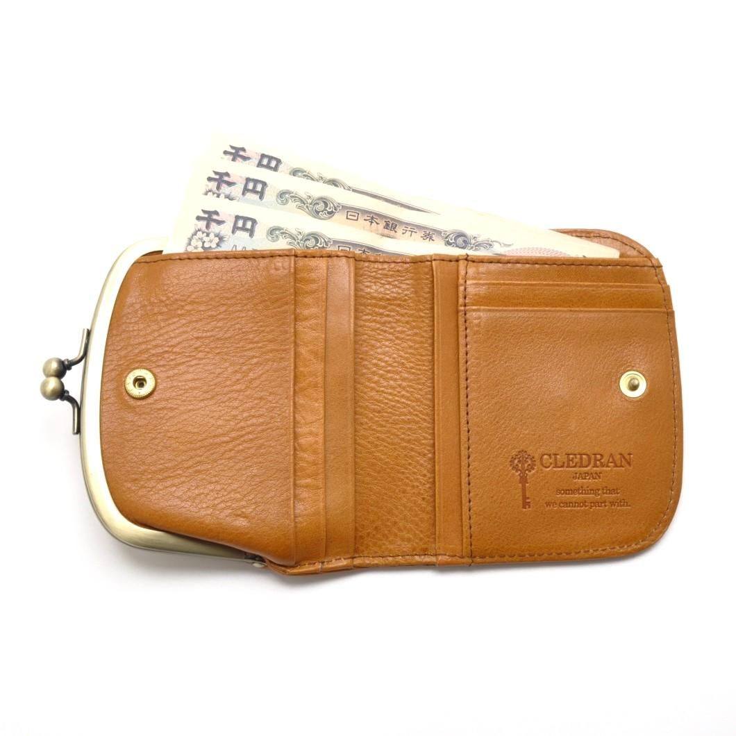 オイルドレザーを贅沢に使用した、2つ折りがま口財布