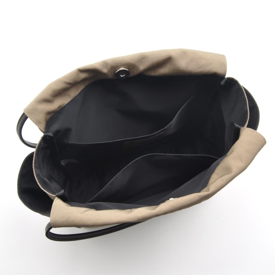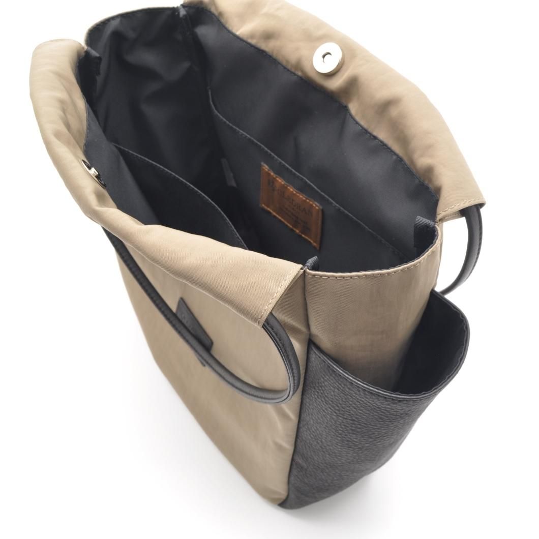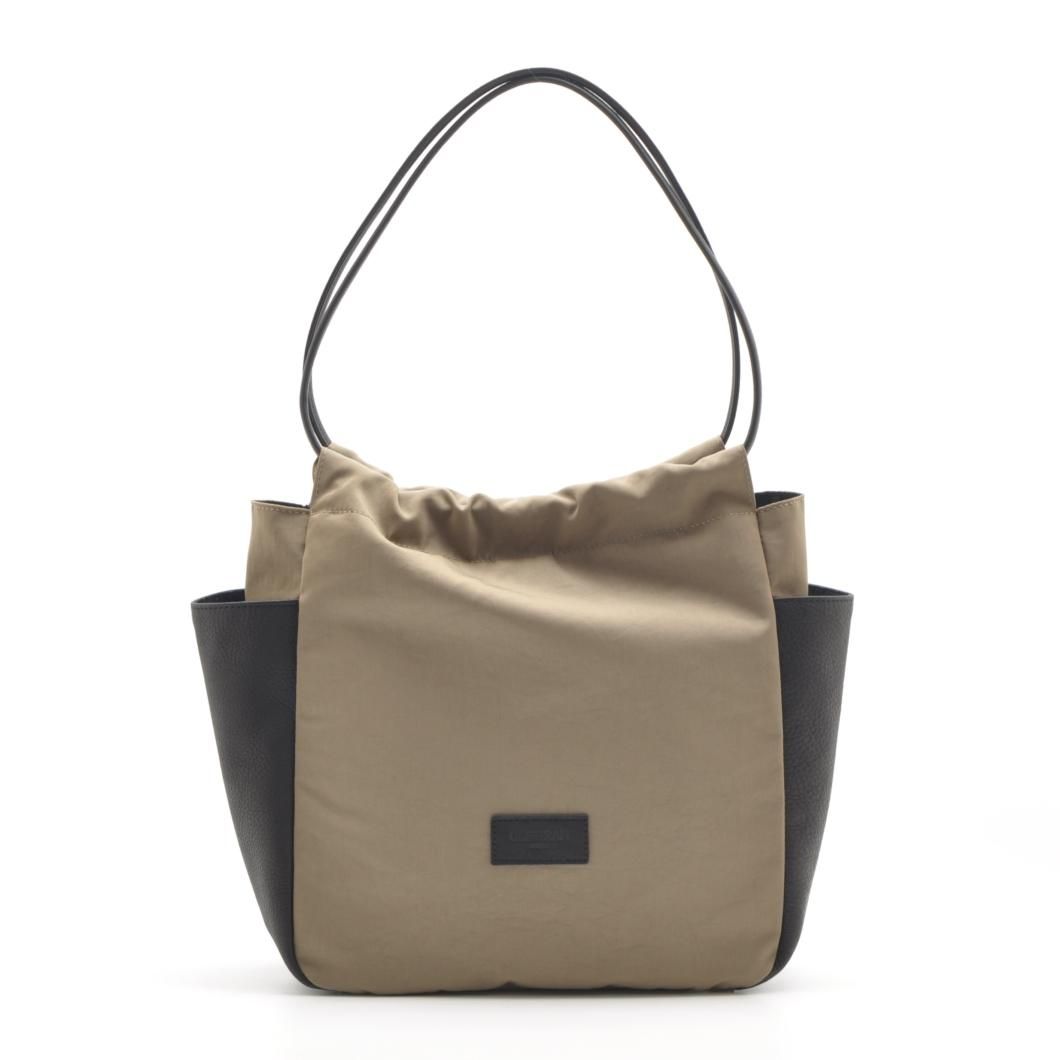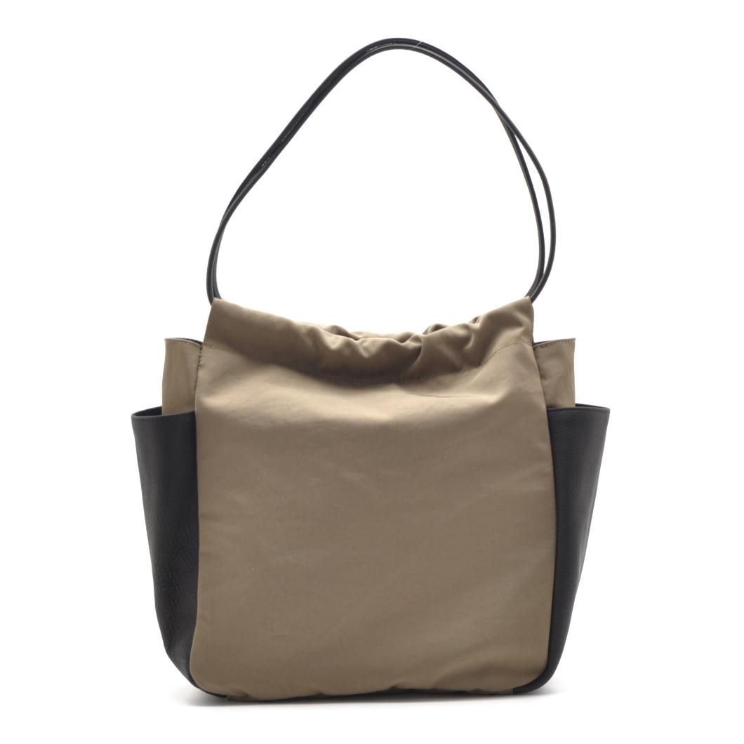 軽やかなナイロンと上質なレザーを組み合わせた、洗練されたデザインのギャザーポケットバッグ。