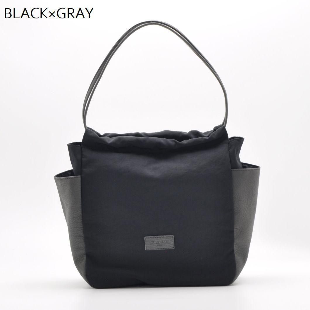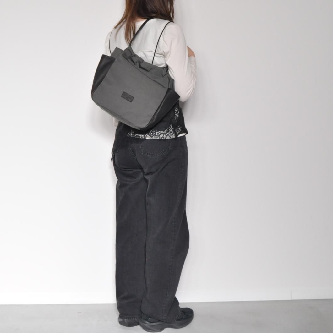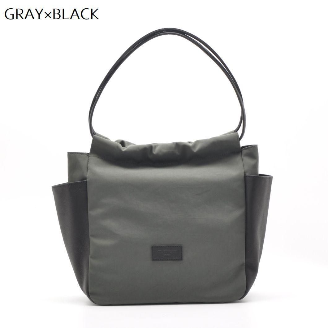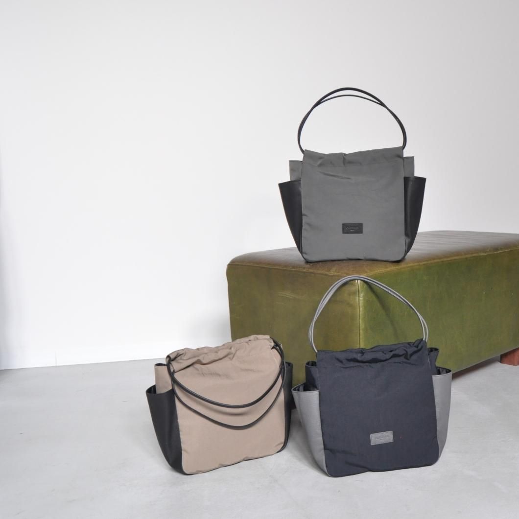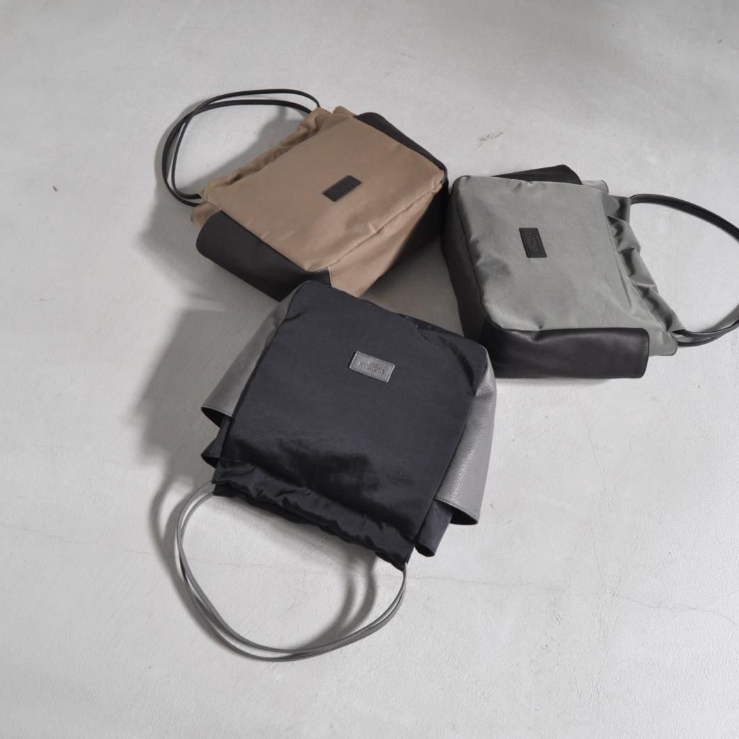 異素材の魅力を楽しむ、ナイロン×レザーのギャザーポケットバッグ