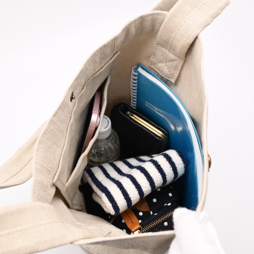 ノートやストール、ペットボトル、長財布など、毎日の必需品をしっかりと収めてくれます。